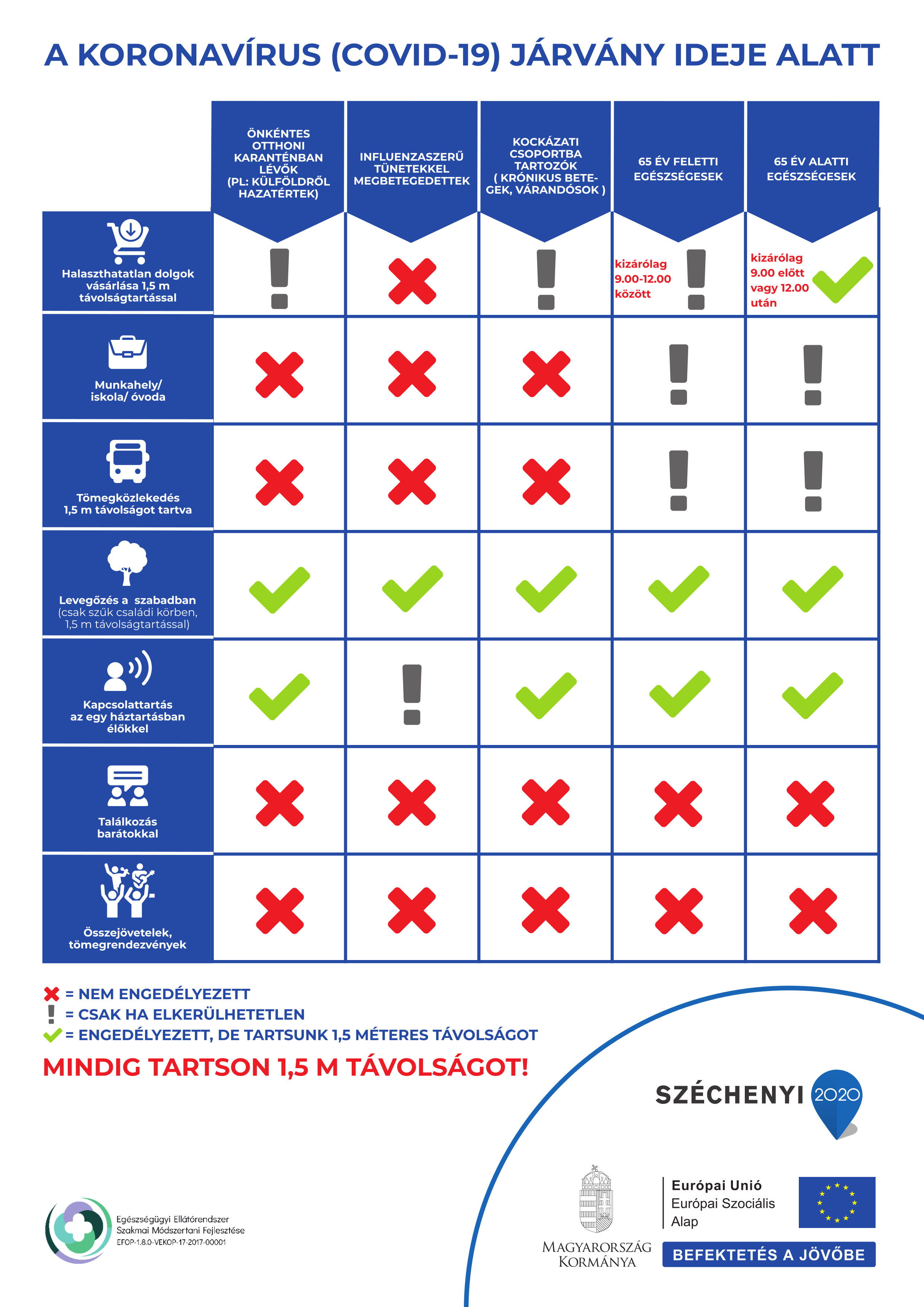 Vegyük komolyan az óvintézkedéseket, a legfontosabb a vírus terjedésének megállítása, az érintkezés elkerülése másokkal, amihez gyakran saját kényelmünket, igényeinket is félre kell tennünk.